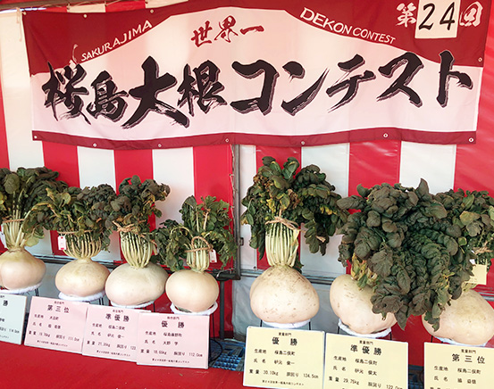 各地で丹精込めて育てられた桜島大根が一堂に集められ、大きさや美しさを競います!