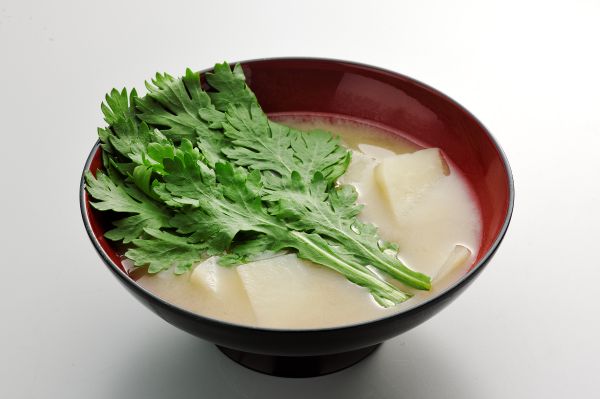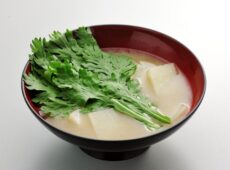 桜島大根と春菊の味噌汁
