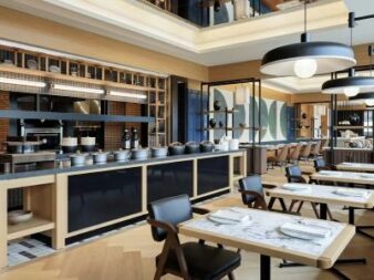 朝・昼・夜で表情を変えるメインレストラン。鹿児島や九州の厳選食材を使い、生産者の想いが伝わるオープンダイニングで、目の前で仕上げる寿司や黒毛和牛など多彩な料理を寛ぎの空間で楽しめます。